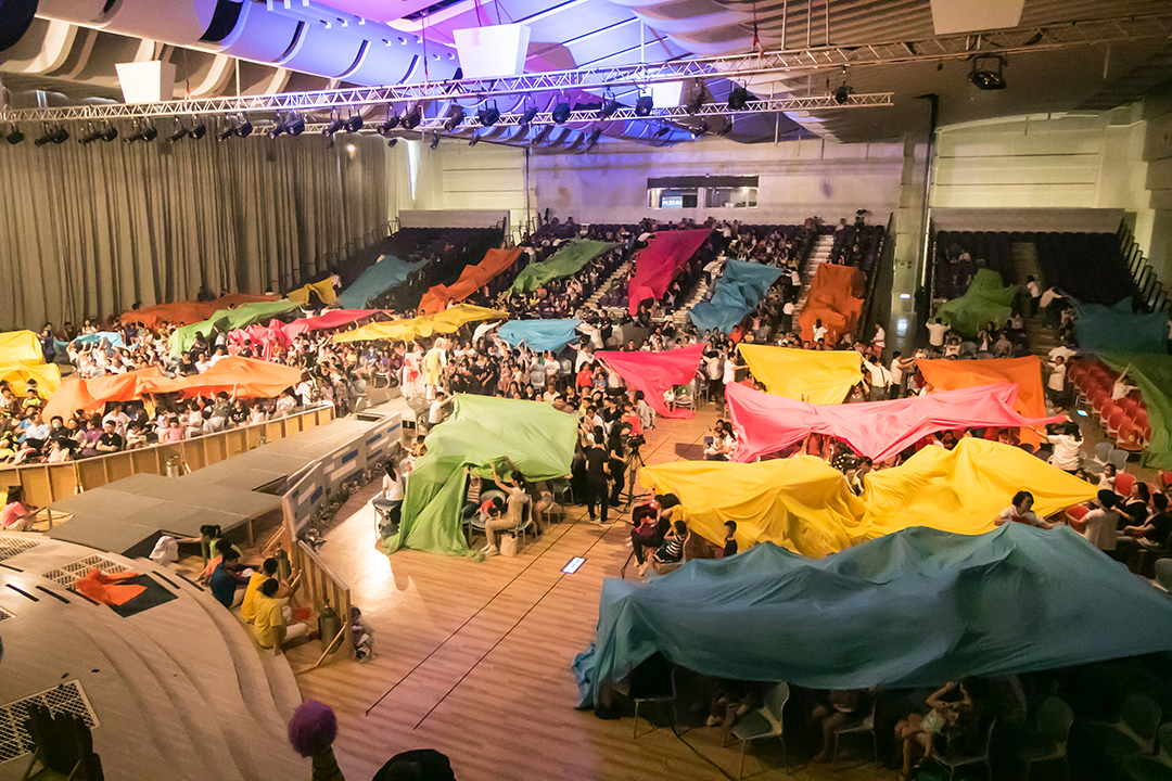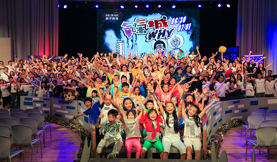 新店行道會Top Kidz 親子劇場《氧氣城 WHY》於6月30日在美河堂活力開演,為期兩天,總共演出三個場次,吸引了逾千位的孩子與家長前來觀賞。今年更與新北市社會局合作,邀請八里愛心教養院的孩童,一起在戲劇裡享受歡樂的時光。