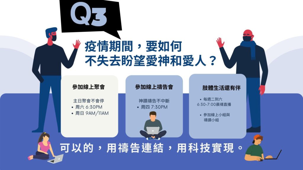 用電腦和手機參加視訊禱告,讓肢體生活繼續連結。