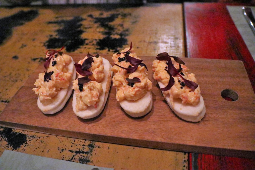 最愛「米餅包裹厚厚的龍蝦沙拉」,上撒黑珍珠般昂貴的俄羅斯黑魚子,入口之際,黑魚子在舌尖粗厲的滑行、與爆裂後溢出的鮮美,鬆脆的手指餅配合著滿滿細膩的龍蝦沙拉,口感、滋味卓絕!