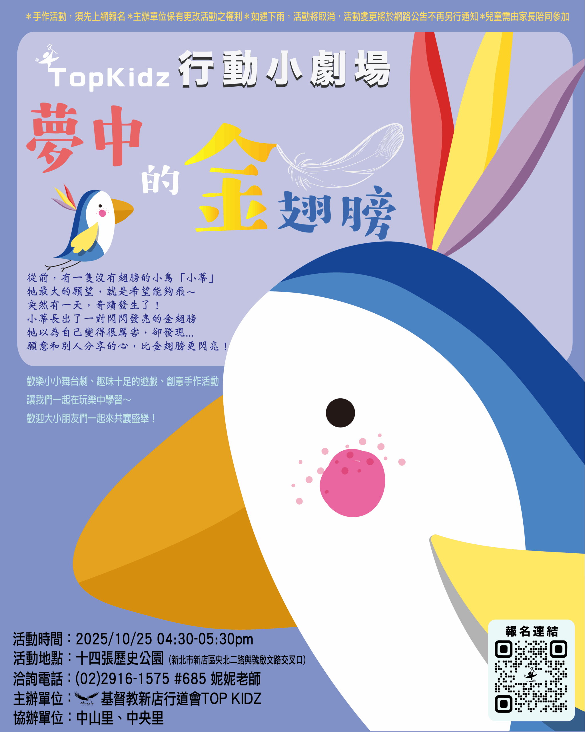 TopKidz 行動小劇場|夢中的金翅膀 Gallery TopKidz 行動小劇場|夢中的金翅膀 最新消息 TopKidz 行動小劇場|夢中的金翅膀 tomie2025-10-17T20:03:04+08:0017 10 月, 2025|最新消息| 載入更多 0