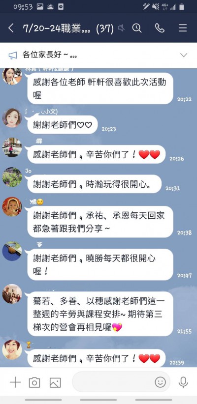 王曉勝小朋友(升三年級):我最喜歡的是養小雞,我學到知錯能改。 莊妤恩小朋友(升四年級):我最喜歡的是養小雞,學到怎麼團結合作。 卓敬一小朋友(升五年級):我這次在營隊裡學到要團隊合作,也學到養雞的技能,還有防災的常識。 陳心甜小朋友(升六年級):我在這個營隊學到就是有人可能會失敗,但不要先去罵他,就要跟他說沒關係,等一下你會做的更好,不要氣餒。